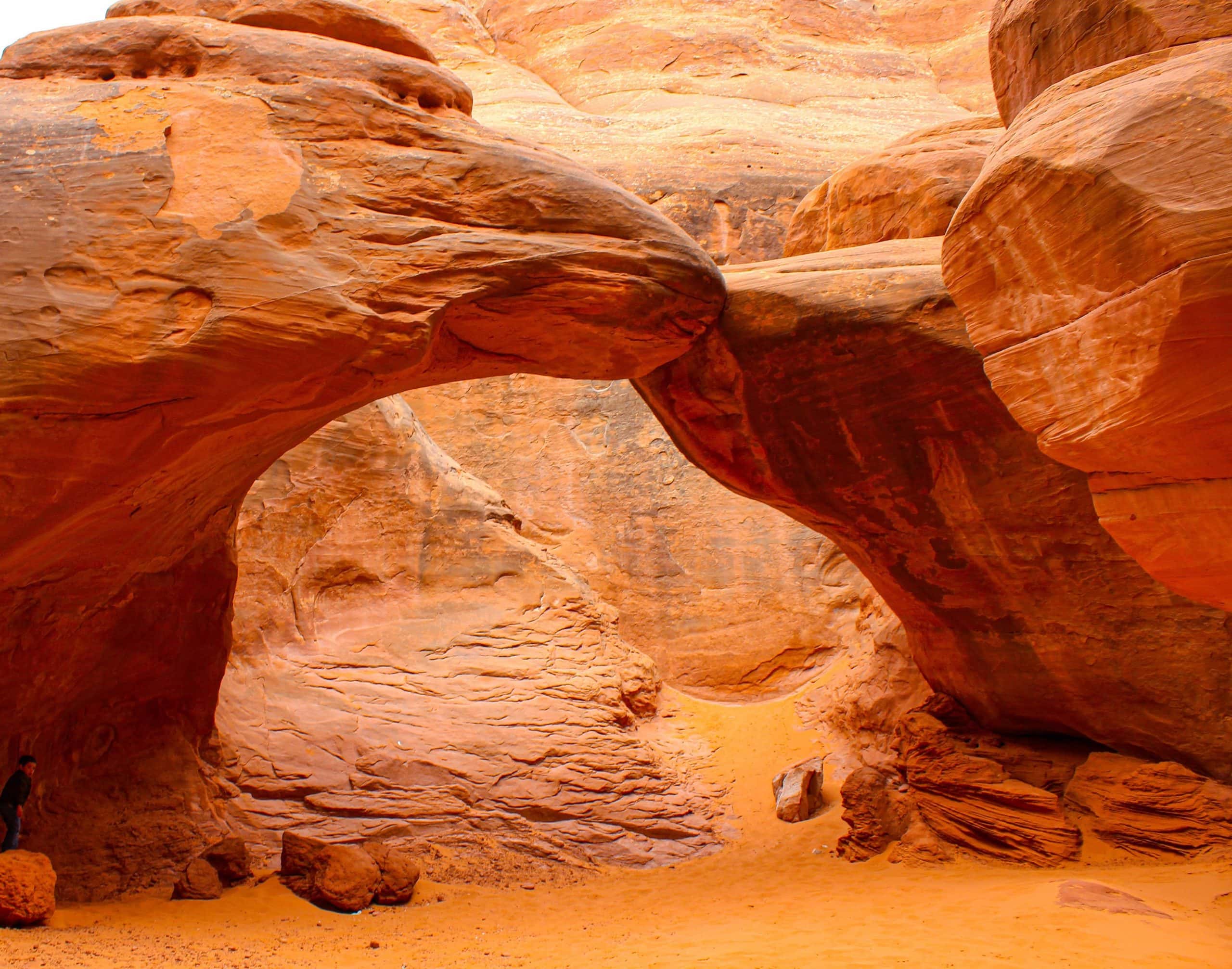 The experience of putting your feet in the orange sand is quite spectacular and should be a huge hit among the kids. If you would like to stay overnight and camp after the 1.7-mile hike, you can also enjoy the Devils Garden Campground onsite.