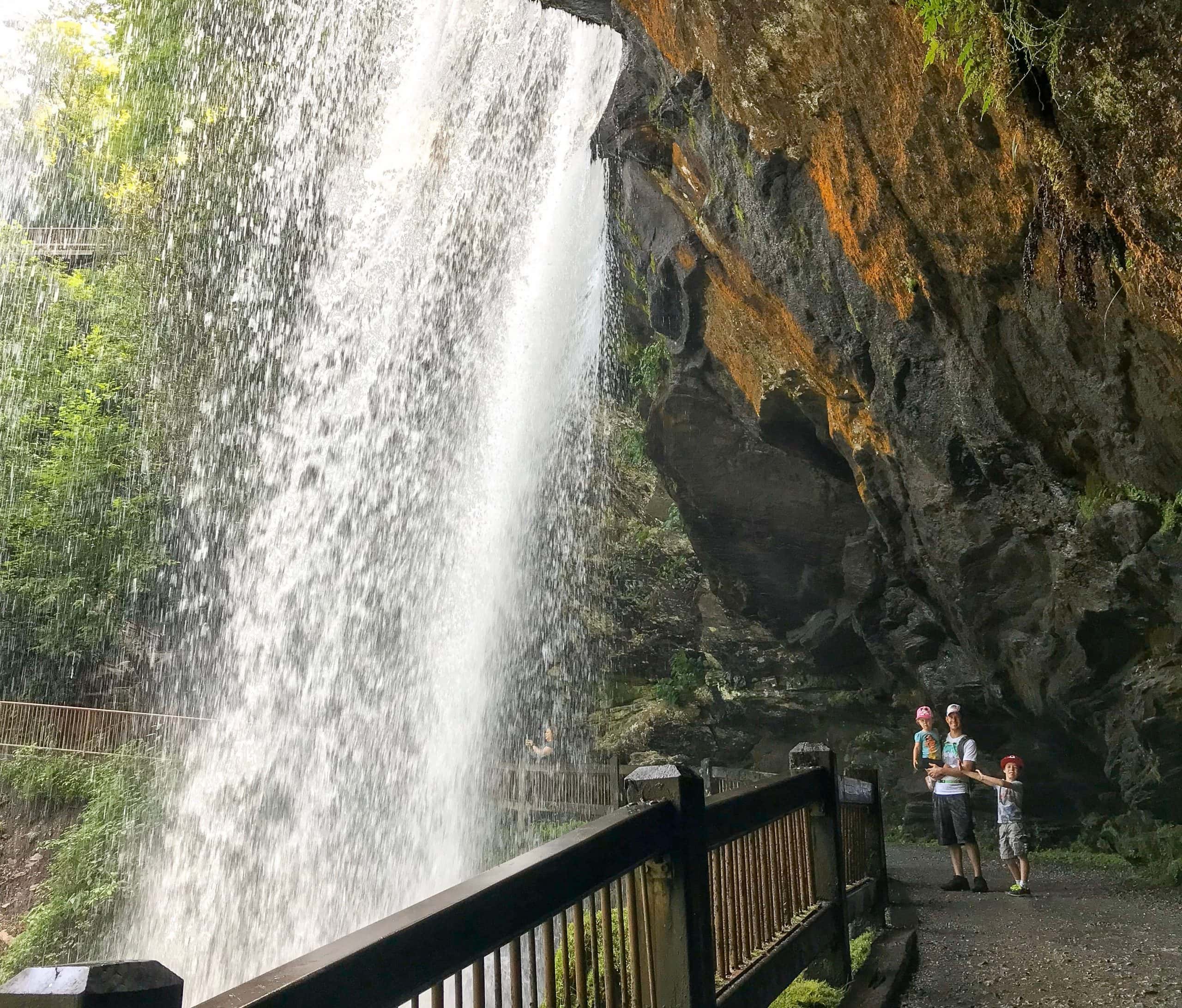 Behind the Dry Falls in North Carolina. Photo by @lewisfamcoast2coast